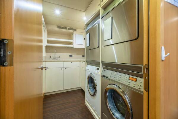 Accommodations for 12 guests in 6 beautifully appointed staterooms, including an on-deck, split-level master with dedicated his and hers en-suites, a VIP queen stateroom on the bridge deck, three additional king staterooms, and a twin stateroom with Pullman berth.